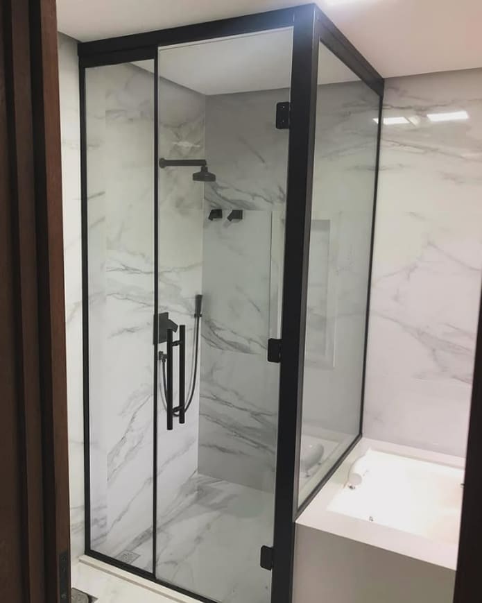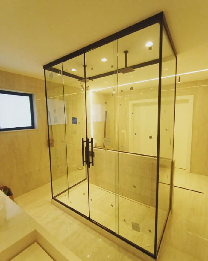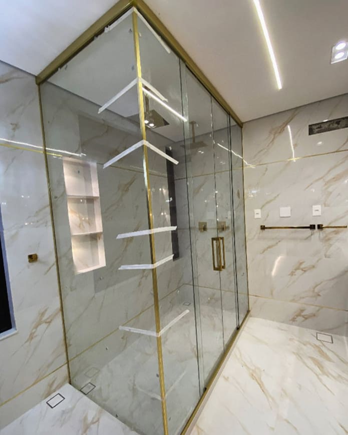 Projetos personalizados para banheiro, com folhas de vidro de alta durabilidade, facilidade de limpeza e um visual elegante e moderno